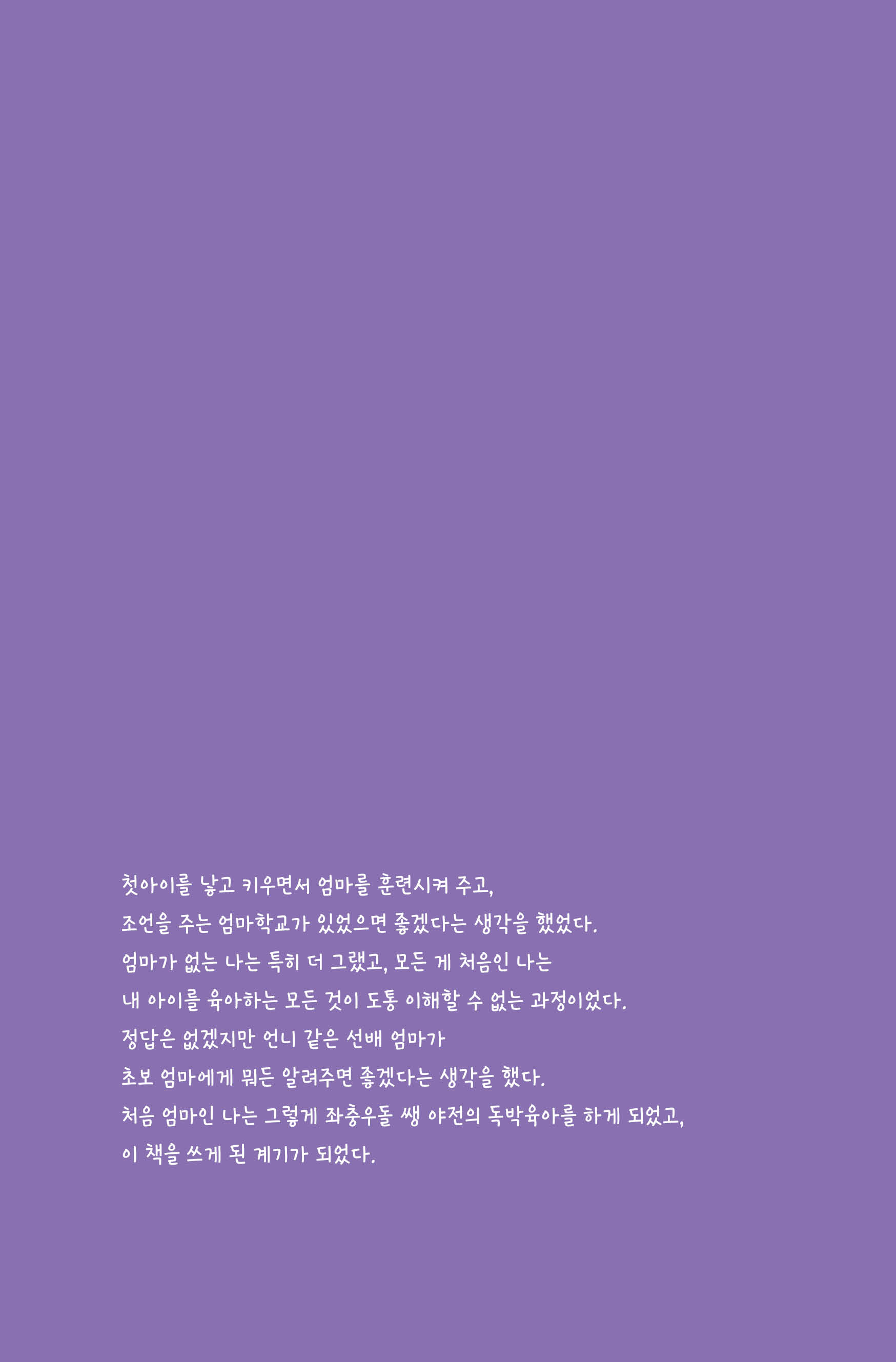 이 책의 저자인 이지연 원장은 다른 집 아이들을 가르치는 선생님으로, 주말에는 선생님들을 가르치는 선생님의 선생님으로, 그리고 집에선 두 아이를 홀로 돌봐야 하는 일하는 워킹맘으로, 소위 독박육아의 환경 속에서 얻은 그녀만의 달콤살벌한 경험을 이제 후배 엄마들인 그녀들과 나누고 싶어 이 책을 집필하게 되었다. 학부모의 관점으로 아이들을 바라보면 더더욱 학부모 교육이 얼마나 필요한지를 느끼게 된다. 학부모들도 이제 진정한 학부모가 되기 위하여 배우고 애써야 한다. 아이들만이 학교에 가서 앞으로 펼쳐질 사회를 준비하는 것이 아니라 학부모들도 어른다운 모습으로 아이들의 올바르고 행복한 성장을 위한 재교육이 필요하기에 이 책 「대한민국 학부모의 독생자」를 통해서 그에 필요한 유익한 정보를 얻으시길 바란다.